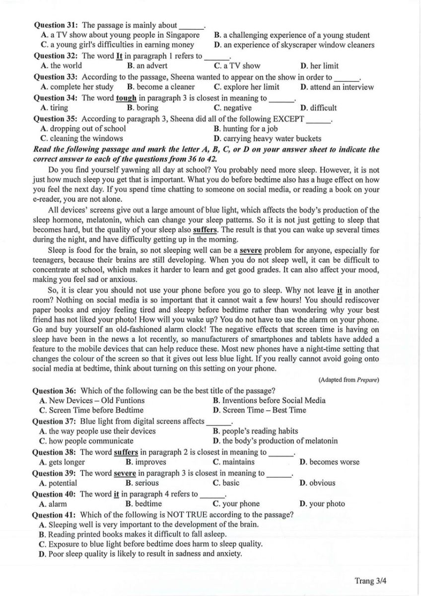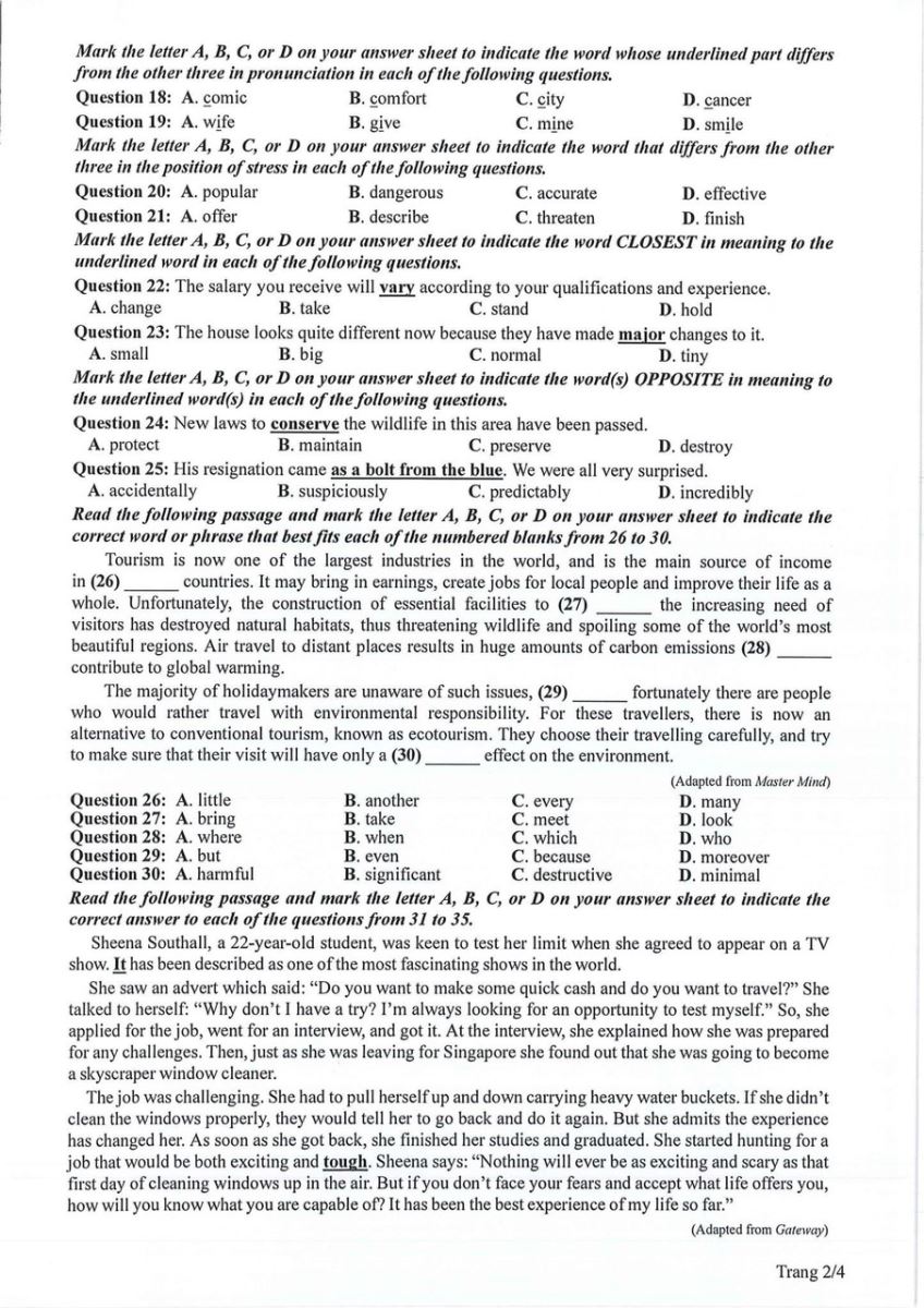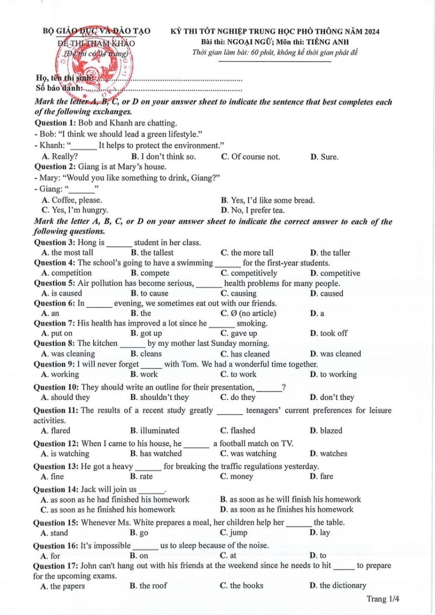 Đề minh hoạ môn tiếng Anh tốt nghiệp THPT 2024 gồm 4 trang, thi theo hình thức trắc nghiệm.